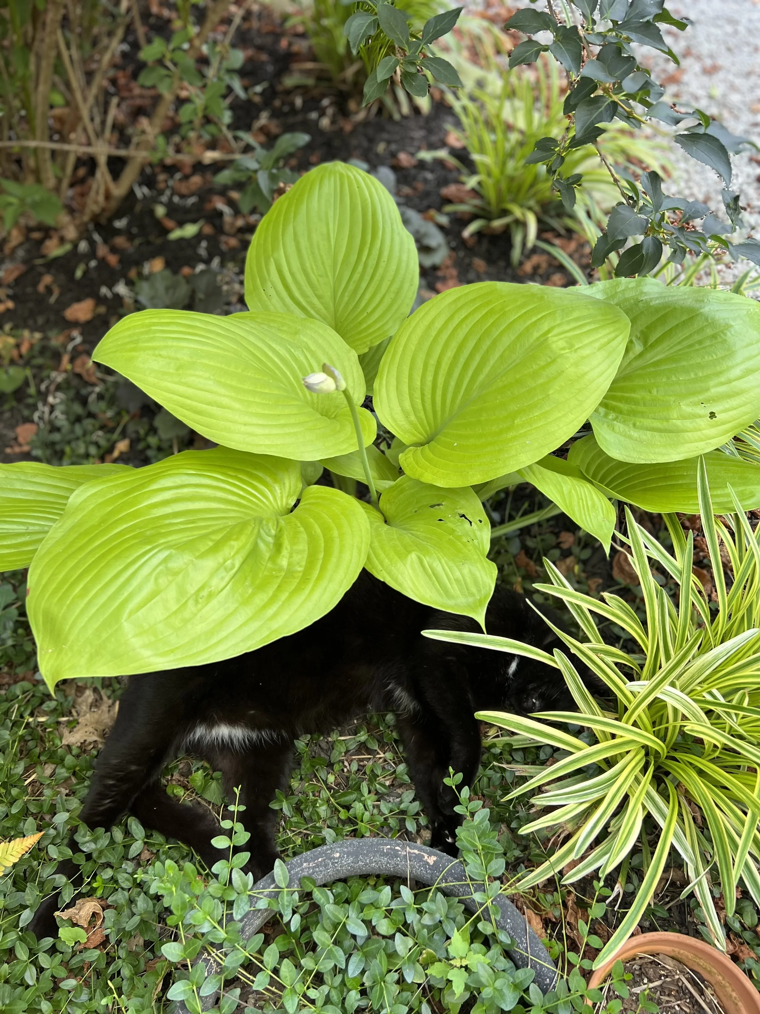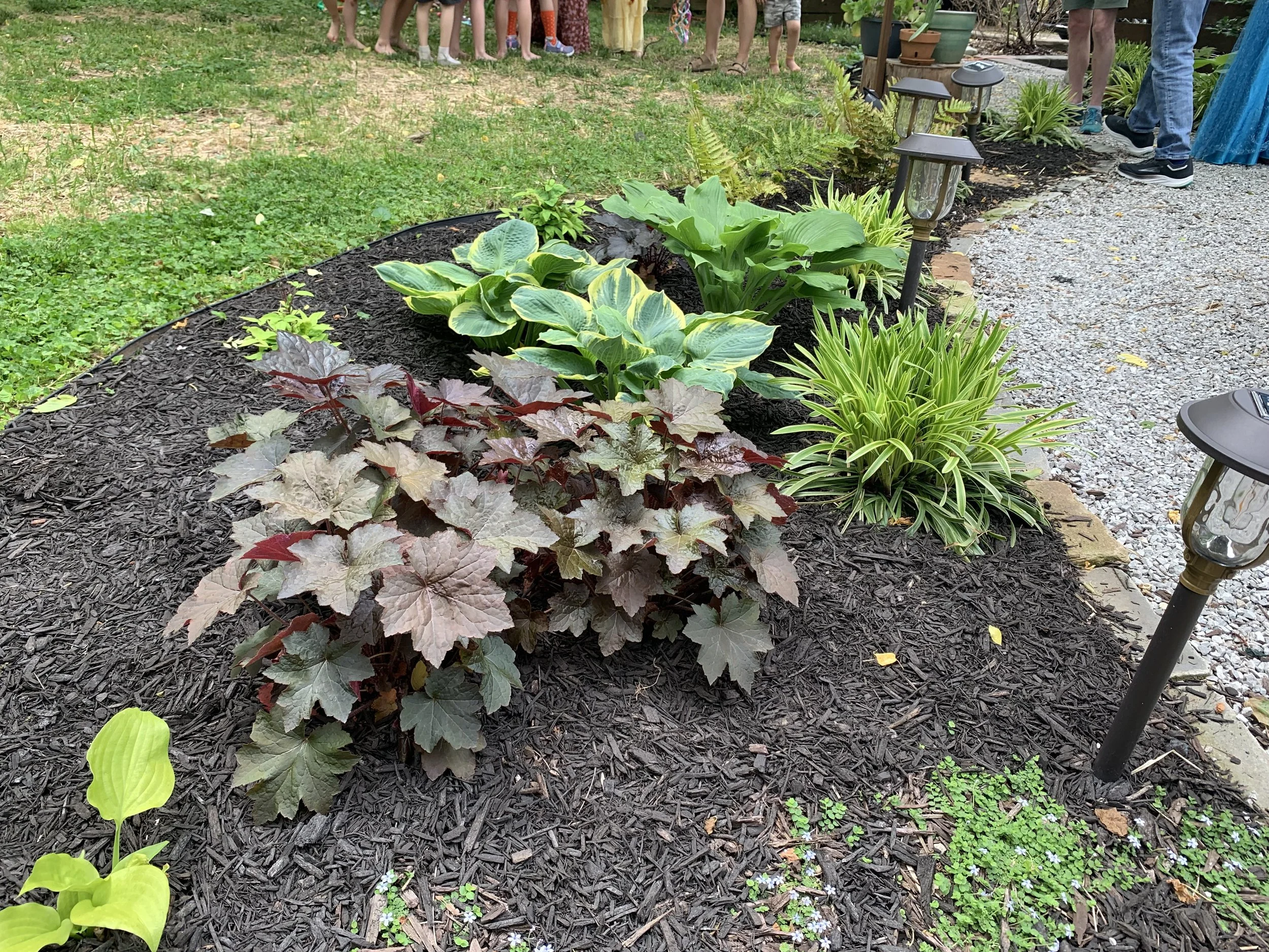 The shade garden’s first year was ready in early May. Here’s a photo timeline of how this space evolved over the first 2 years: